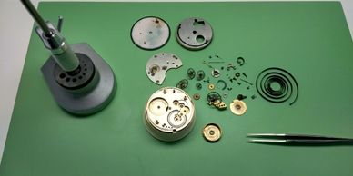 Technical analysis, case opened and movement removed. Movement dismantled each component is ultrasonically cleaned, components replaced. Lubrication and reassembly of the movement using the most advanced lubricants. Timing calibrations and electronically tested.